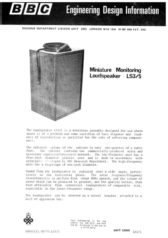 1976 BBC RD1976/29 号文LS3/5A工程设计信息发布。