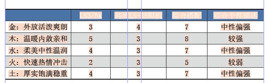 我们再谈谈音响五行的平衡感,在1-5之中,3列在中央,算是个性的中心点,少于3者就是此项个性较弱,大于3者就是个性较强,每一项分数的高低并非优劣之分,而是个性强弱的体现。LS3/5A在“木、水、土”方面个性都非常强,“金”为中性,“火”就完全是偏弱项。器材搭配方面,最直接影响的就是喇叭的直接驱动端——功率放大器,音响五行缺什么,就补什么,比如LS3/5A在火方面为个性弱项,如果搭配的功放也是不温不火的慢性子,那么出来的声音就是龟速爬行,毫无热情冲击力可言,所以可配搭火力较强的功放;3/5A的木性已达到非常温暖内敛的程度,假如同样配搭偏向木个性的放大器,那么结果就可能变得“木讷不堪,过于内敛”,这种极端的配搭未必长久耐听,除非你一定要偏执于这种个性,否则尝试配以稍冷感、外放的器材,以金克木,适当中和,才能调校声音个性的平衡。除了功放还有音源,至于线材和脚架等调声部件,都可遵循这一原则来匹配调声。不仅是器材本身,还有空间的声音五行属性,这些都要根据实际环境和聆听品位综合调校。结合上面为LS3/5A所作的个性评分,再加上高班胆机的评分列在表中,让我们来看看结果:
