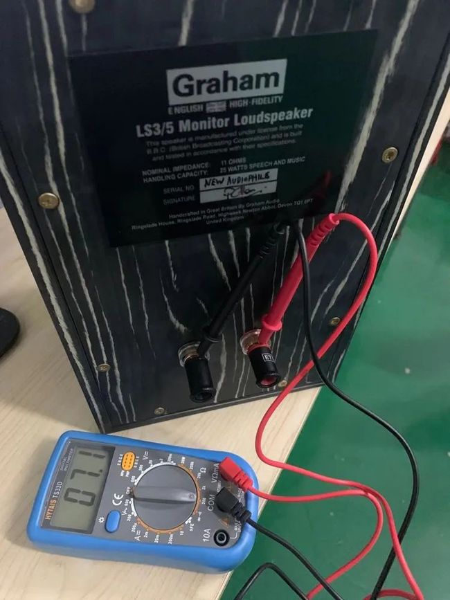 我们查阅了国外专业网站,英国本土的品牌基本都获得了授权。当年的BBC认证大致这样操作:生产厂家需要至少拿两对以上的样品扬声器到BBC认证部门送检,可记得那对英国藏家手里的001-002号和003-004号LS3/5A,附带了大量的绘制图纸,一对留在BBC备案,另一对则作为标准箱拿回自家公司用于参考调整。喇叭供应商提供的高低音单元要严格匹配,KEF的大部分T27和B110喇叭都不能符合BBC标准而被淘汰出来,分频器里的电容控制在10%误差以内,更严格的甚至低于5%,并通过高通电路跳脚和C2a+C2b电容并联组合精细匹配。箱体的尺寸和木材、吸音棉用料也要严格按照BBC标准不能随意改动。